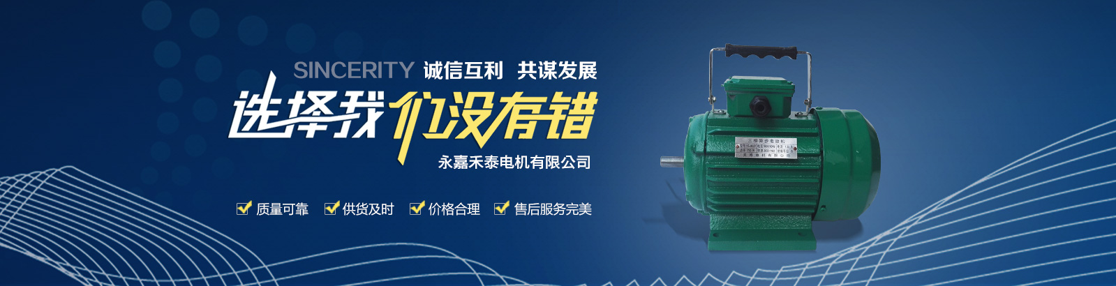 永嘉禾泰电机有限公司是一家专业生产各类电机的现代企业,公司生产:Y2系列三相异步电动机、MS铝壳、YL单相系列电机、YD系列多速电机等产品,公司有先进的电机检测设备,使产品得到有力保证。我们以不断的创新来面对市场,产品畅销全国各地...